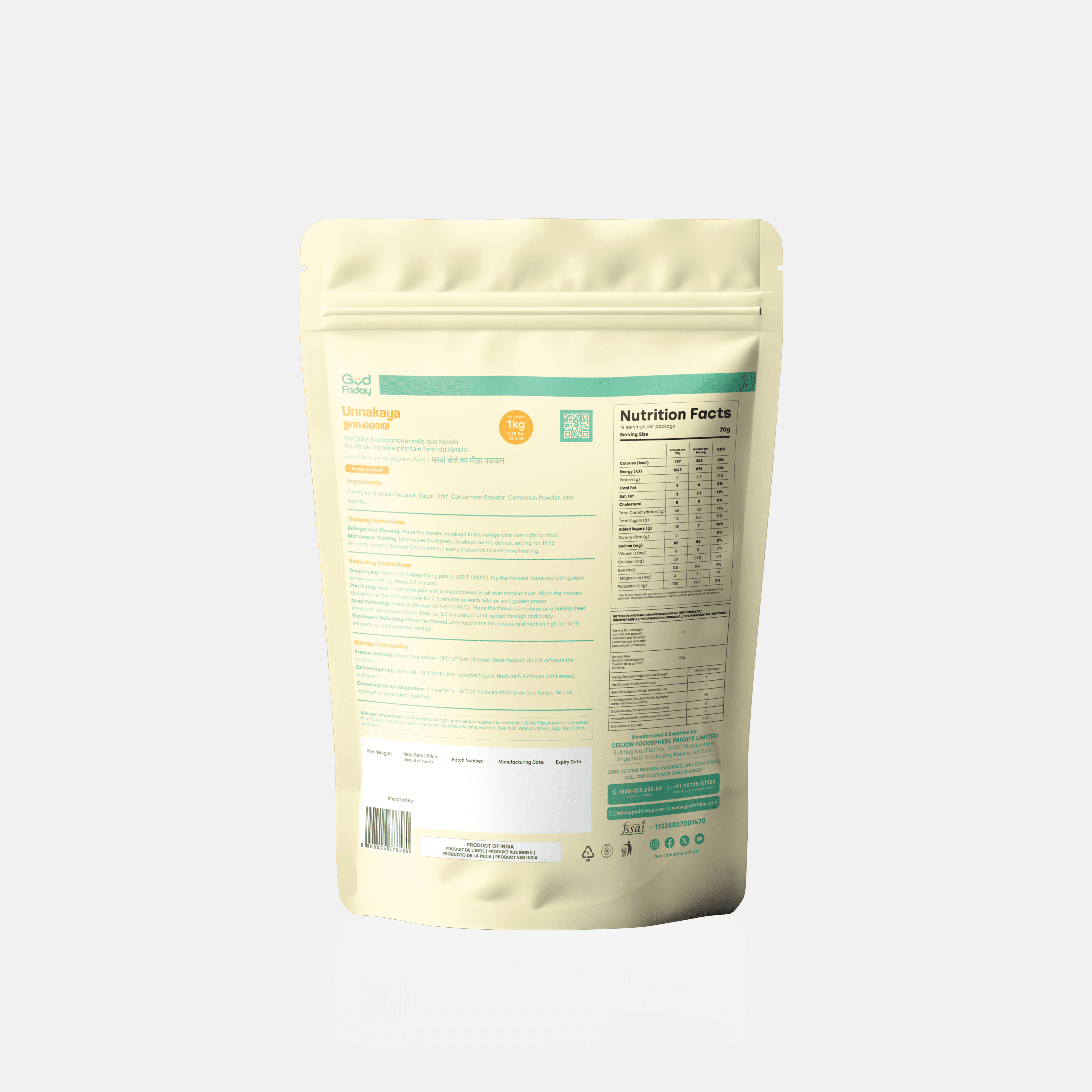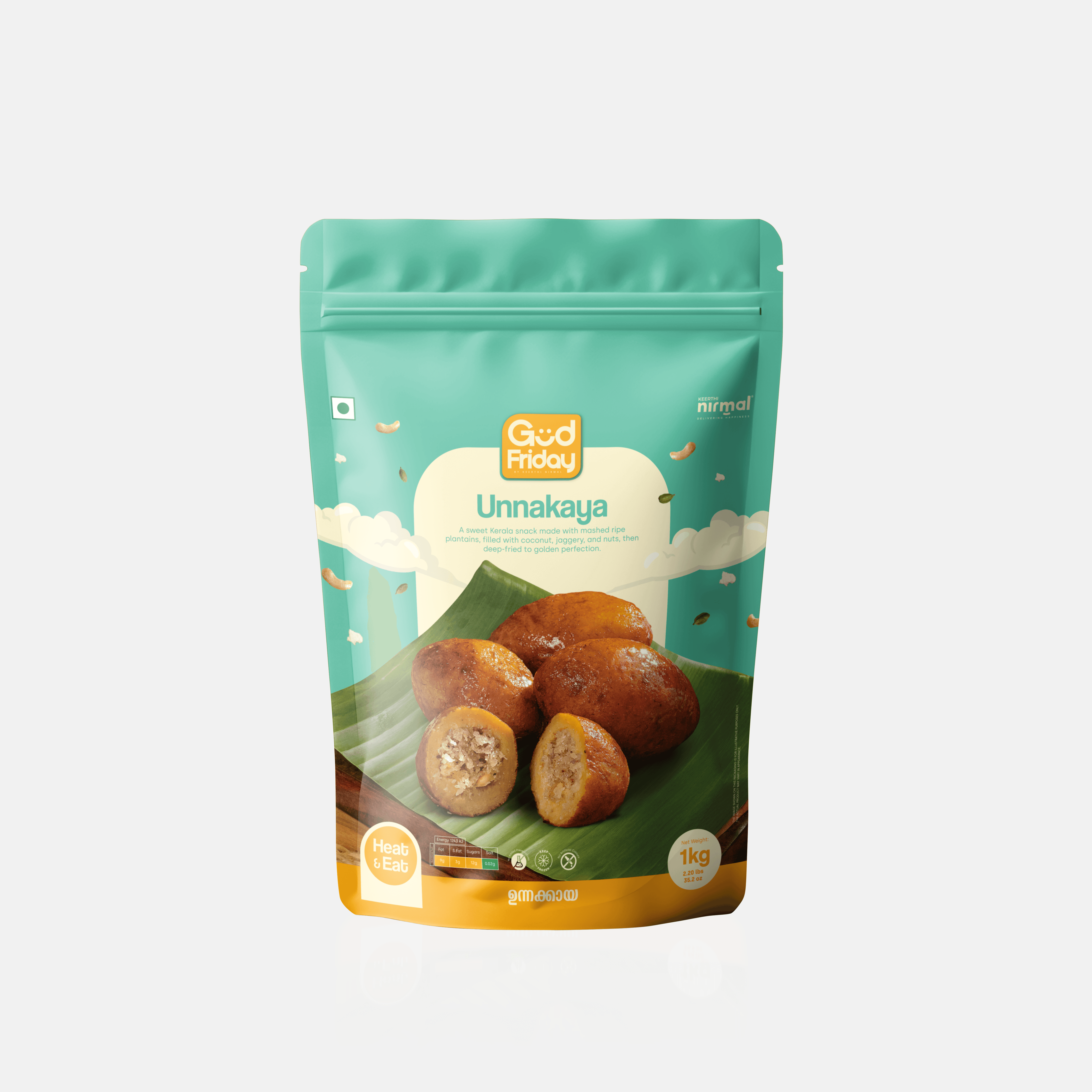 Unnakkaya is a traditional Kerala delicacy made using ripe Nendran bananas, mashed and shaped into rolls, then stuffed with a rich coconut filling and gently fried until golden. Crisp on the outside and soft on the inside, it offers a comforting blend of natural sweetness and warm, aromatic flavours in every bite.